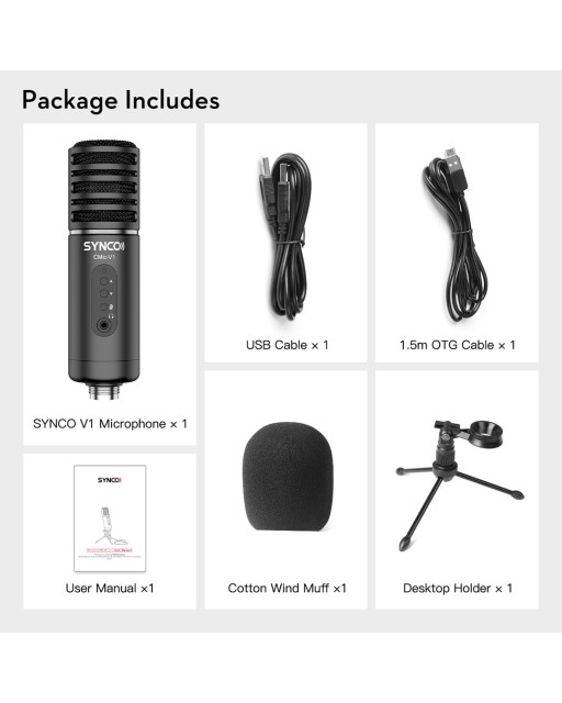 Das CMic-V1 ist das erste Großmembran-Elektretmikrofon von Synco mit USB-Stromversorgung/-Ausgang. Er bietet einen breiten, ausgewogenen Frequenzgang im Bereich von 20 Hz bis 20 kHz und einen brillanten Klang für den vielseitigen Einsatz in Heimstudios, beim Live-Streaming usw. Die integrierte Elektronik bietet einen USB-Ausgang, Kopfhörerabnahme (3,5-mm-Klinke) sowie Gain- und Mute-Steuerfunktionen über integrierte Tasten. Ein Tischständer ist ebenfalls enthalten...