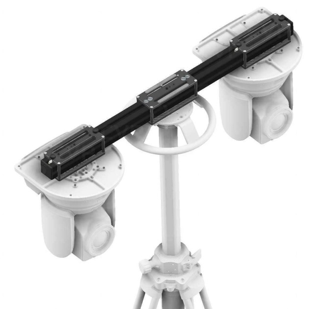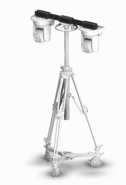 Bitte beachten Sie, dass die Kamera nicht im Lieferumfang dieses Produkts enthalten ist. Diese Halterungsstange ist für die Aufnahme von bis zu drei PTZ-Kameras mit einem ausgerichteten Befestigungsmuster ausgelegt. Sie ist mit allen Sockeln, Mitchell-Basisstativen und allen Cartoni-PTZ-Halterungen kompatibel.