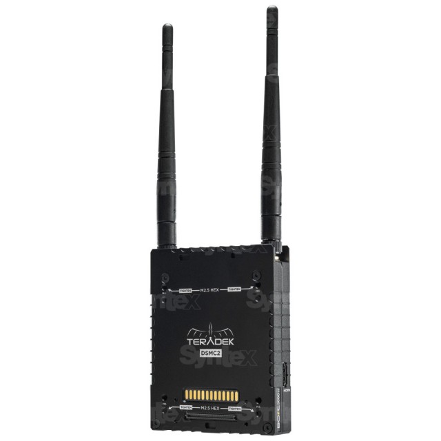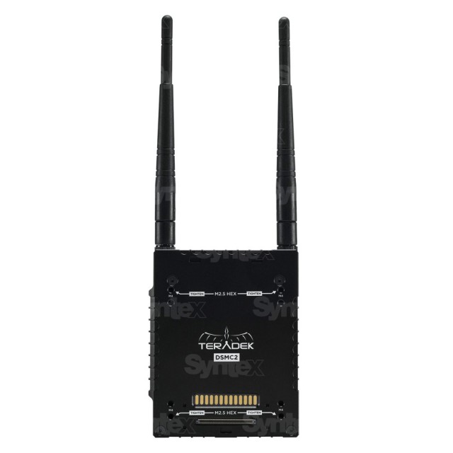 Ein eingebauter POGO-Anschluss verbindet die RED-Kamera und nutzt das RED-POGO-Anschluss-System zur Stromversorgung und Sicherung der Rückseite der DSMX2-Kamera. Die mitgelieferten Antennen sorgen für ein starkes Signal, das bis zu 150 Meter weit reichen kann. Der Sender unterstützt bis zu vier Empfänger, und die integrierte AES-128-Verschlüsselung schützt Ihre Videos vor neugierigen Blicken. Die Rauschunterdrückungsfunktion sorgt dafür, dass Ihre Videos klar bleiben, selbst wenn sie auf den Frequenzen 2,4 und 5,8 GHz arbeiten.