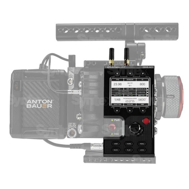 Assistant Camera Interface mit RT-Sender und -Empfänger (inkl. Lemo-Kabel). Mit dem MDR.ACI-Modul kann die Kamera aus einer Entfernung von bis zu 1,5 km ferngesteuert und die Motoren für Fokus, Blende und Zoom bedient werden. Die Fernsteuerung erfordert die Kopplung mit einem anderen RF.ACI- oder MDR.ACI-Modul. Ideal für die Steuerung von Kamera und Objektiv, wenn eine drahtlose Verbindung erforderlich ist, z. B. bei Kränen, Luft- oder Autoaufnahmen usw.