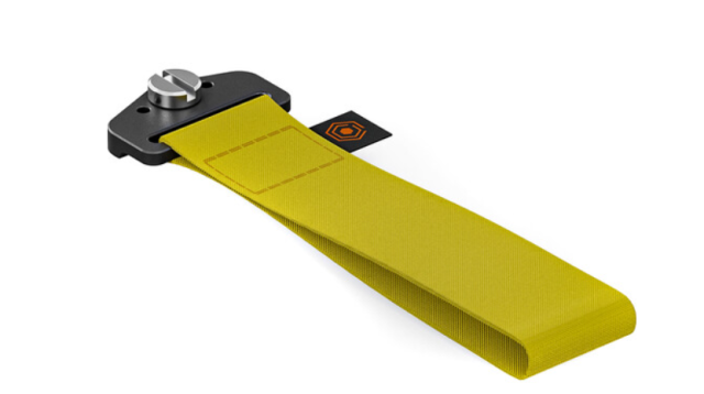 Der Tilta TC-MS-Y 1/4"-20 Befestigungsgurt (gelb) ist eine helle, gut sichtbare Schlaufe aus gewebtem Stoff mit einem Aluminium-Gewindestift (1/4"-20), der jede offene 1/4"-20-Öse am Boulder Camera Cart sofort in einen stabilen Aufhängepunkt für Werkzeuge, Kabel, Taschen oder Marker verwandelt – so lassen sich Ausrüstungsgegenstände auch an hektischen Drehorten leicht finden und greifen.