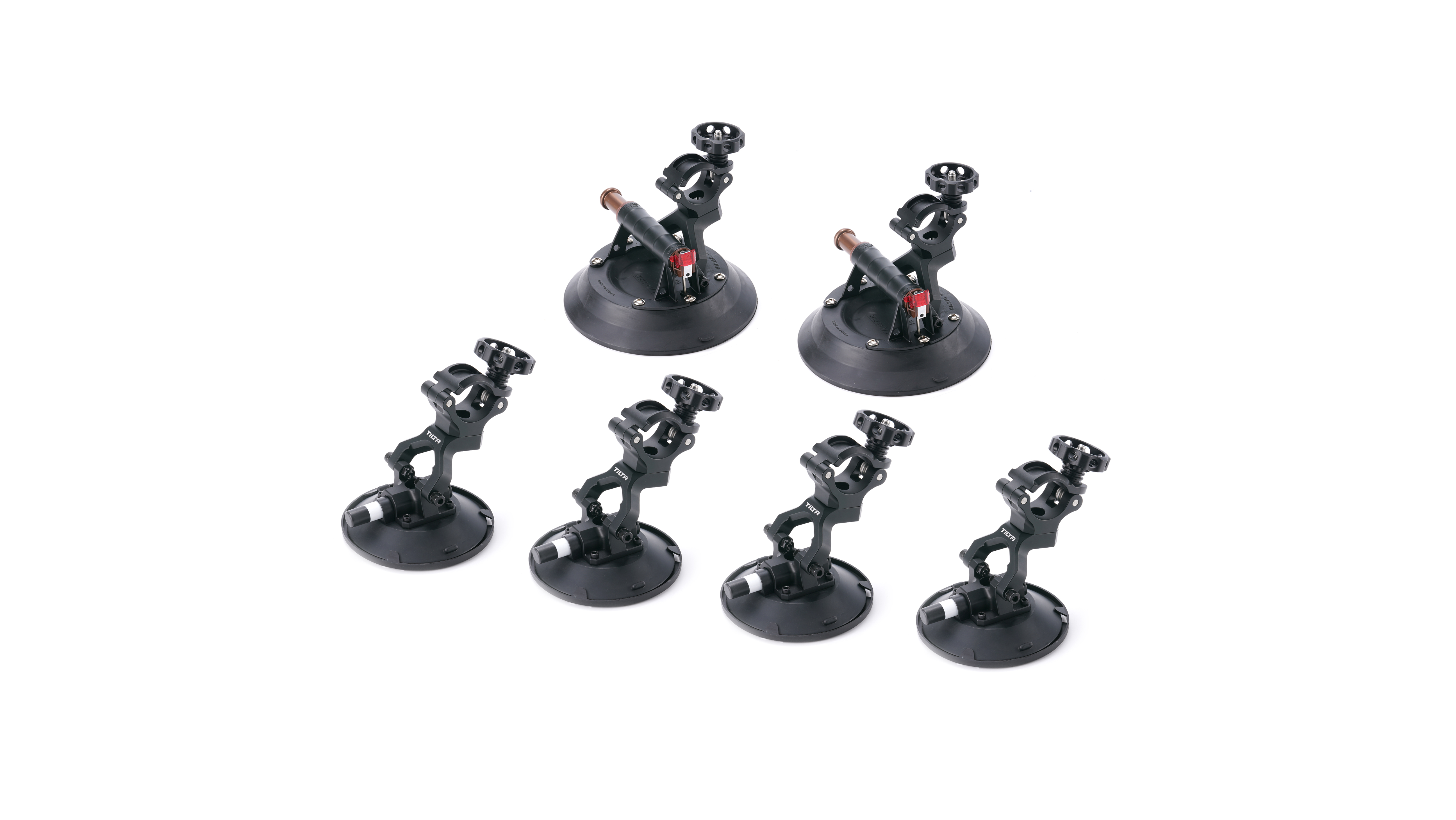 Das Tilta HDA-T08-SCS2 Saugnapf-Set für Hydra Arm Mini ist ein umfassendes Erweiterungsset für die Fahrzeugbefestigung, das zwei 10-Zoll- und vier 6-Zoll-Hochvakuum-Saugnäpfe mit integrierten 50-mm-Speed-Rail-Klemmen enthält und für verbesserte Stabilität und mehrere Kontaktpunkte für den stoßdämpfenden Hydra Alien Mini-Arm an Autos, lKWs oder Panorama-Schiebedächern – ideal für sicherere und vielseitigere Hochgeschwindigkeitsaufnahmen im Freien.