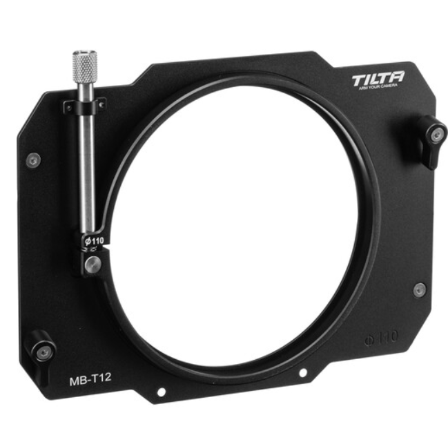 Der Tilta MB-T12-110 Clamp-On Adapter ermöglicht die sichere und leichte Befestigung der Tilta MB-T12 4×5,65"-Mattebox an Objektiven mit einem Außendurchmesser von 110 mm. Er besteht aus strapazierfähigem Aluminium und Edelstahl und verfügt über ein praktisches, mit Rändelschrauben festziehbares Klemmdesign und Schlüsselloch-Befestigungsschlitze für eine schnelle und zuverlässige Installation – ideal für professionelle Kameraleute, die eine optimierte, stangenfreie Konfiguration suchen.