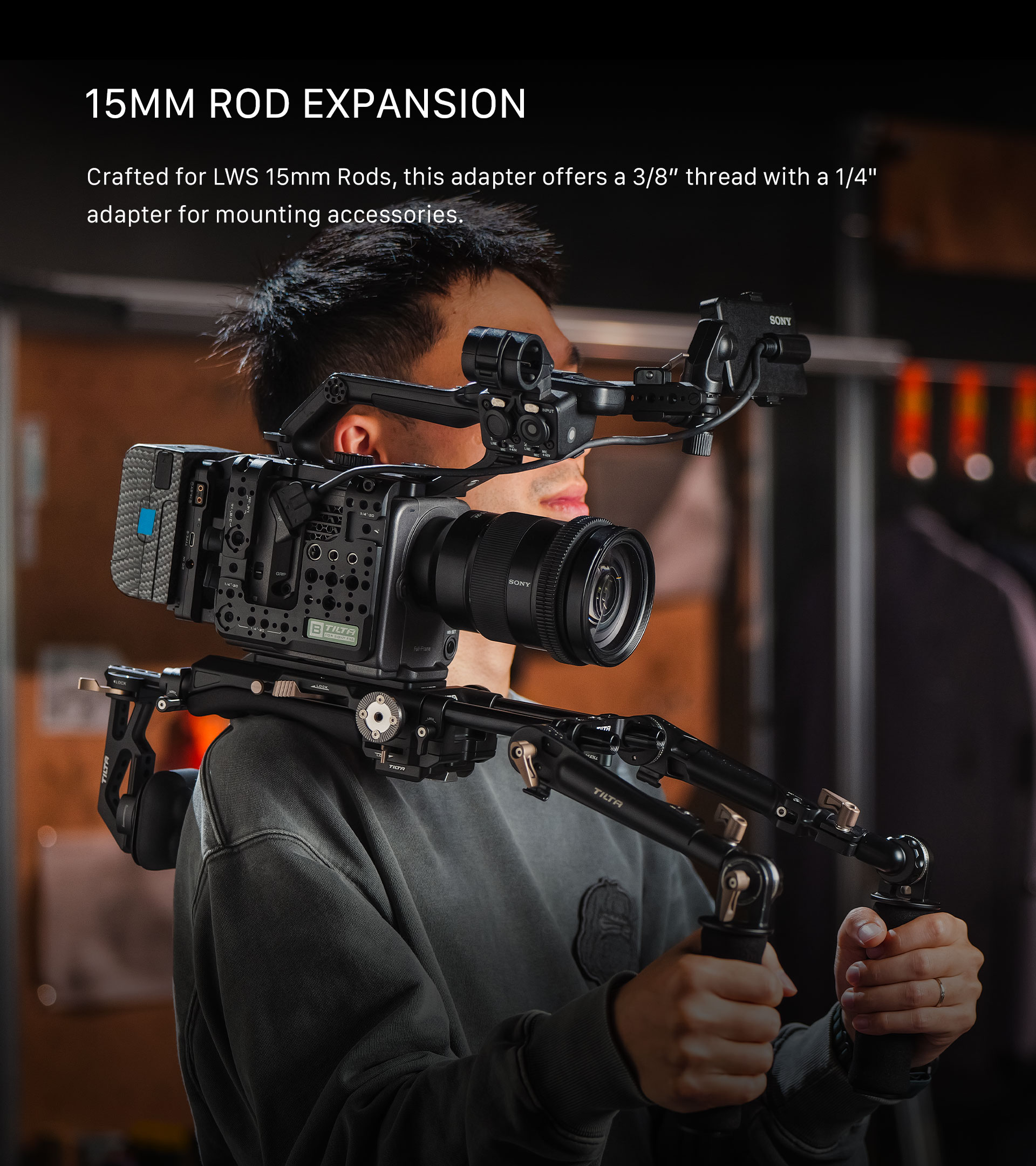 Dies ist ideal für Benutzer, die Rosettenverlängerungsarme und Handgriffe anbringen möchten, um ein Schulter-Rig-Setup zu erreichen, ohne ein eigenständiges Schulter-Rig zu benötigen.