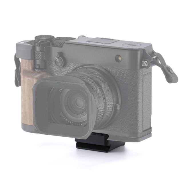 Diese ARCA-Schnellwechselplatte kann direkt an der Unterseite der Montagebasis mit Holzgriff für Vintage-Käfige von Tilta befestigt werden, die für die Kameras Fujifilm GFX100RF, X100VI und Leica Q3 bestimmt sind .