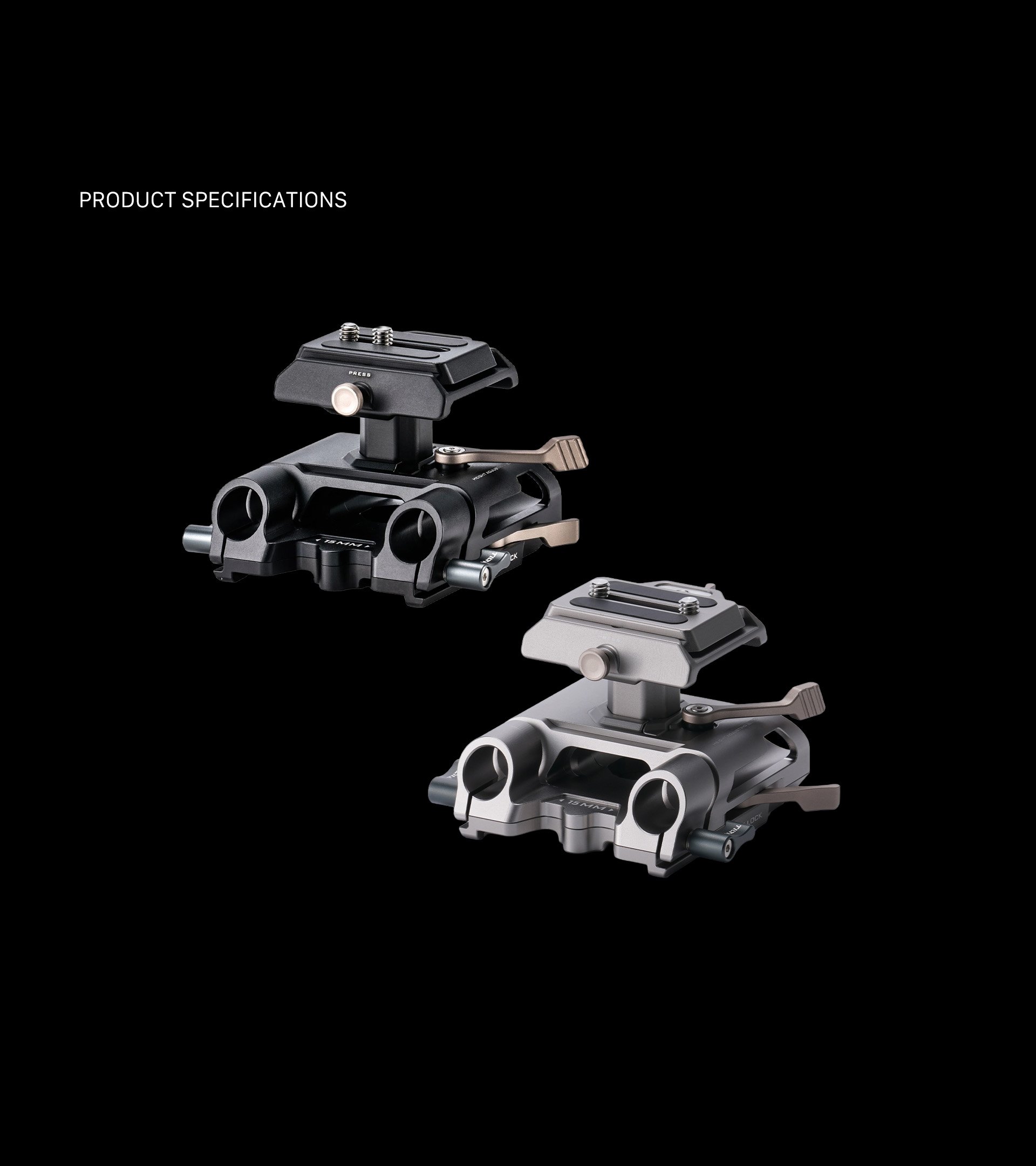 Diese 15-mm-Grundplatte ermöglicht die Verwendung von 15-mm-Stäben (nicht im Lieferumfang enthalten), um verschiedenes Zubehör wie Matteboxen oder Follow-Focus-Systeme zu montieren.