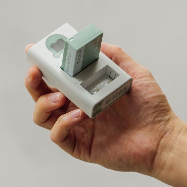 Es ist nahtlos kompatibel mit allen Kameras und Zubehörteilen, die NP-W126S-Akkus unterstützen, wie beispielsweise verschiedene Fujifilm-Modelle. Die beiden Steckplätze des Ladegeräts ermöglichen ein unabhängiges Laden, sodass Sie einen Akku aufladen können, während der andere fertig wird, wodurch die Betriebszeit maximiert wird. Dank seiner kompakten Form passt es problemlos in Kamerataschen oder Taschen und verkörpert Tiltas Engagement für eine tragbare Infrastruktur auf professionellem Niveau.