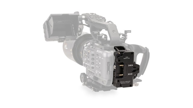 Diese Akkuplatte lässt sich schnell in die Batteriekammer der Sony FX6 einbauen und verriegeln und kann durch eine Verbindung mit der Multifunktionsplatte zusätzlich gesichert werden.