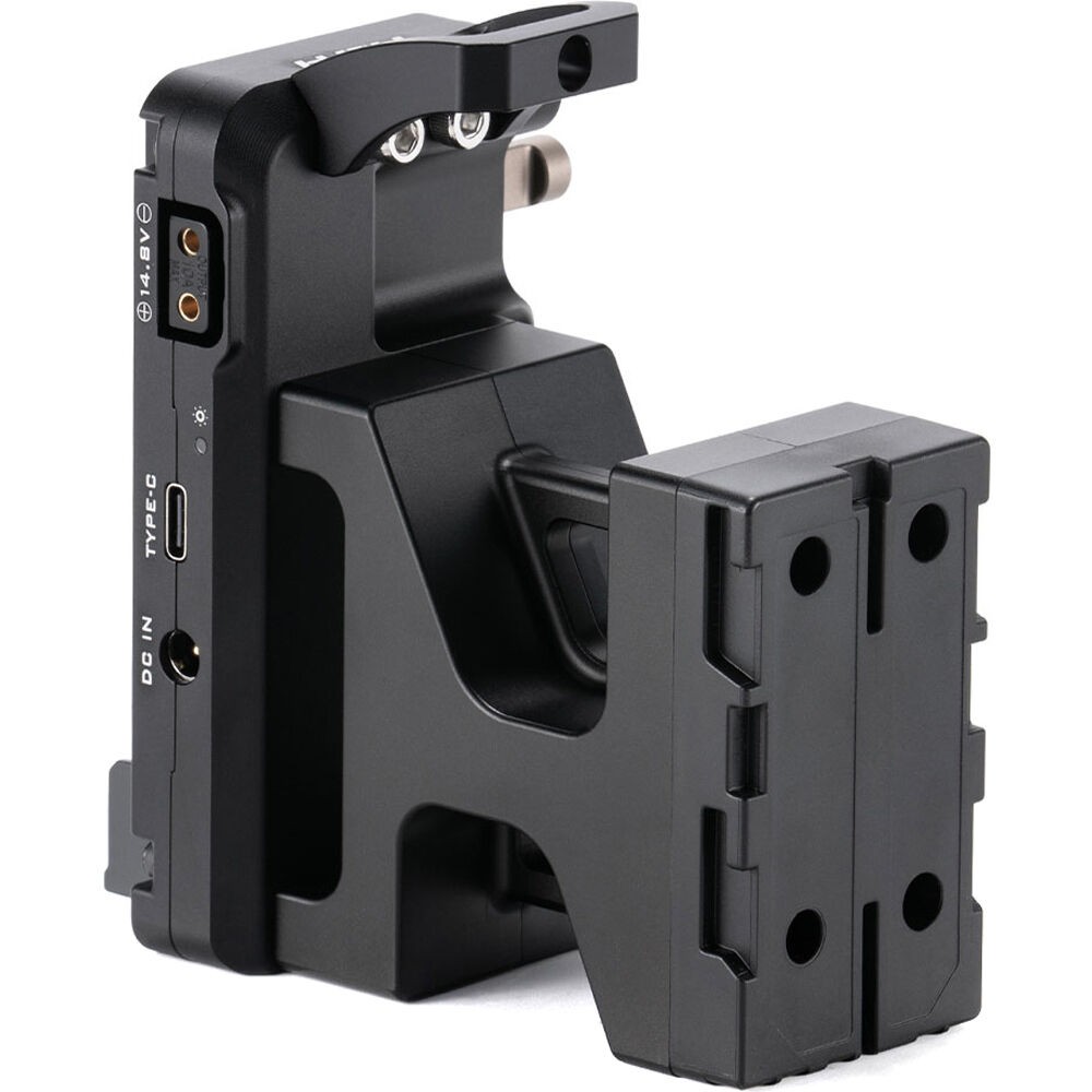 Diese Akkuplatte lässt sich schnell in die Batteriekammer der Sony FX6 einbauen und verriegeln und kann durch eine Verbindung mit der Multifunktionsplatte zusätzlich gesichert werden.