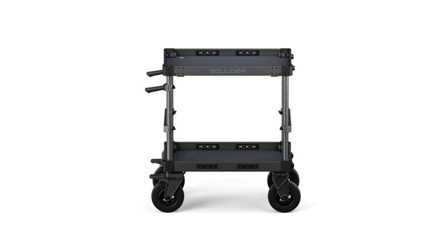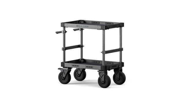 Der Tilta Boulder Camera Cart ist ein robuster, aus Aluminium gefertigter Transportwagen für professionelle Filmemacher und Fotografen. Mit seiner strapazierfähigen grauen Oberfläche, den großen Geländereifen und dem modularen zweistöckigen Design bietet er zuverlässige Unterstützung beim Transport und der Organisation von Kameraausrüstung am Set. Ergonomische Seitengriffe und eine stabile Konstruktion sorgen für reibungslose Manövrierbarkeit und machen ihn zu einem unverzichtbaren Werkzeug für Produktionsteams.