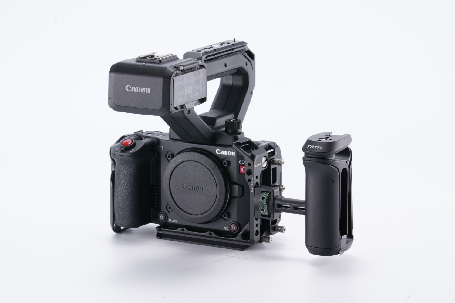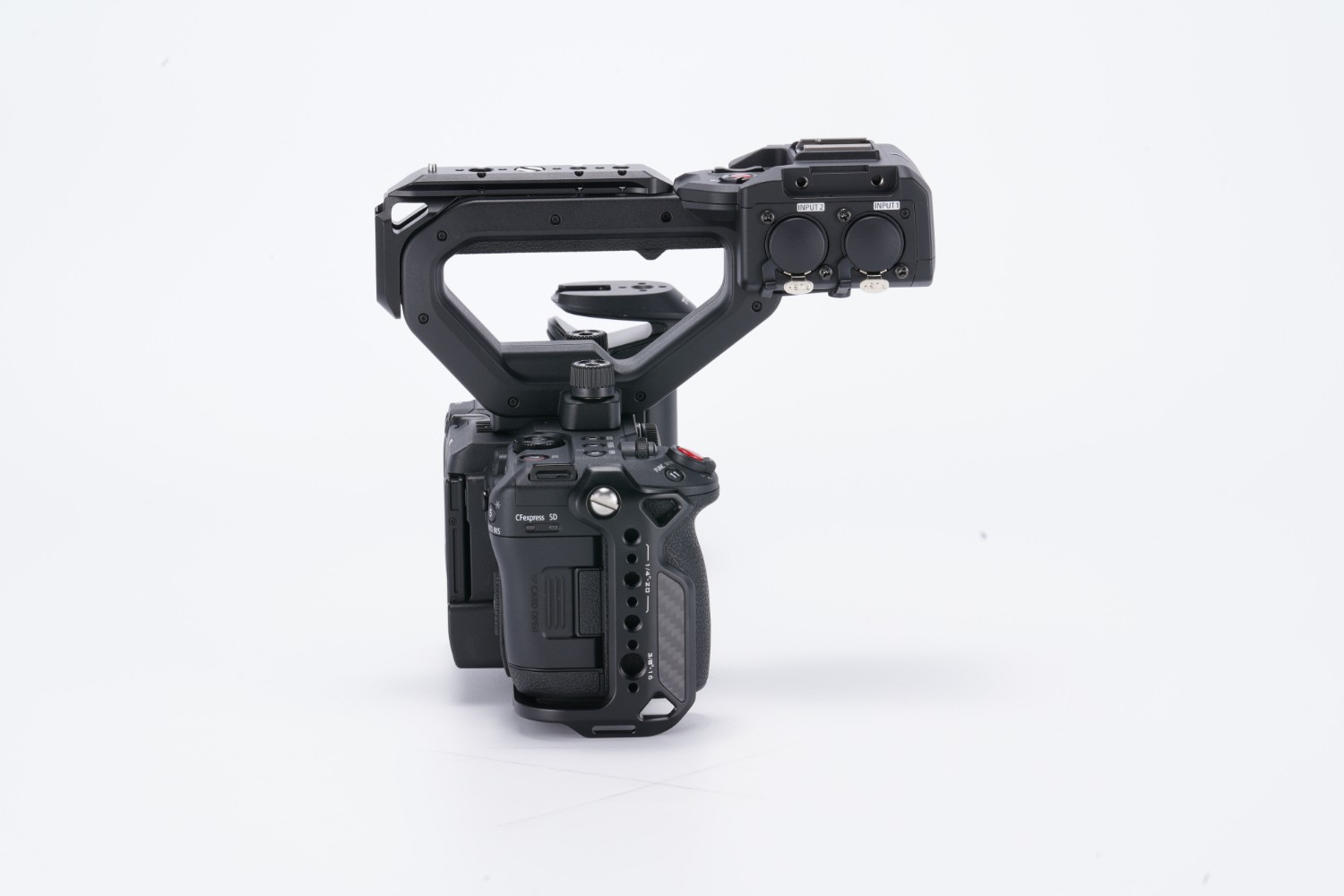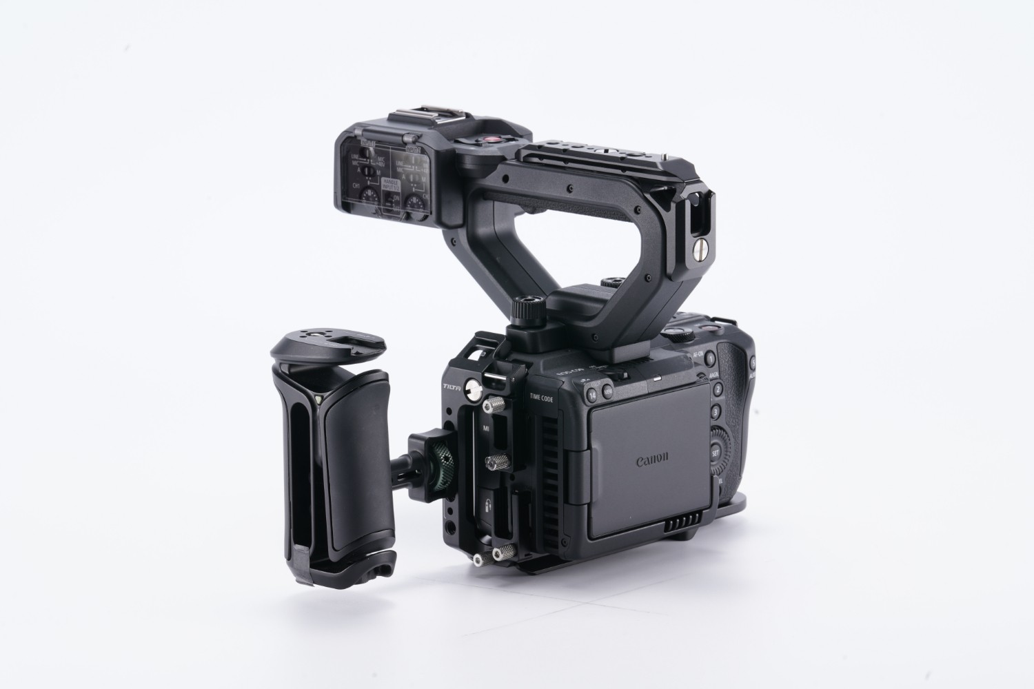 Die Basis dieses Sets von Tilta bildet ein Vollkamerakäfig, der so konzipiert ist, dass er zusätzlichen Schutz für das Gehäuse der Canon C50 bietet und den Benutzern die Möglichkeit gibt, verschiedene videobezogene Zubehörteile anzubringen.