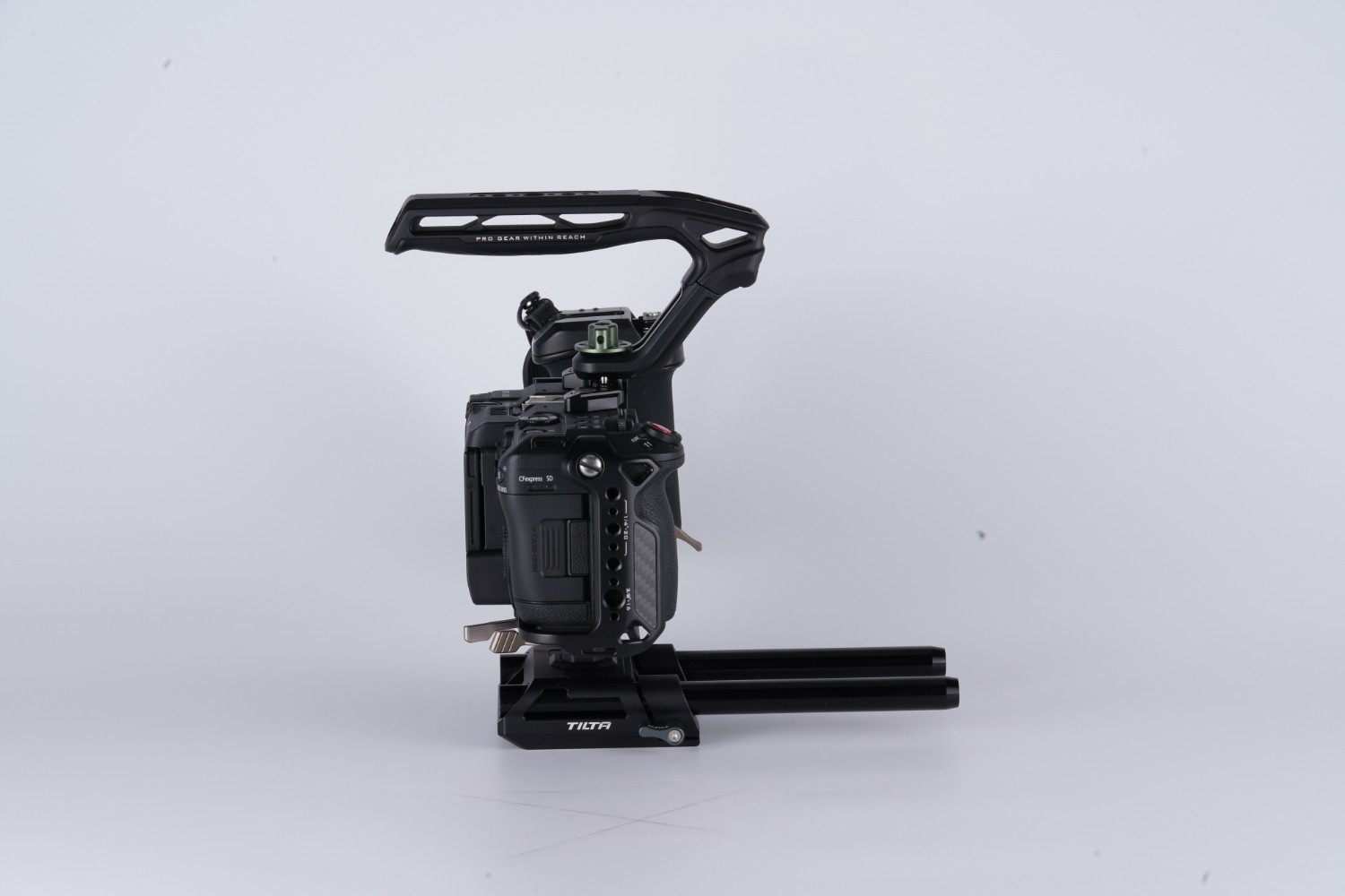 Erweitern Sie Ihre Videografie-Ausrüstung mit dem Tilta Camera Cage für Canon C50 Power Kit Black. Dieses umfassende Cage-System bietet robusten Schutz für Ihre Kamera und verfügt über wichtige Befestigungspunkte für Zubehör wie Beleuchtung und Mikrofone. Das mitgelieferte Netzteil verlängert die Akkulaufzeit für lange Drehtage erheblich und ermöglicht so einen unterbrechungsfreien Arbeitsablauf. Dieses Rig aus hochwertiger Aluminiumlegierung vereint Langlebigkeit mit einem leichten Design. Das Tilta Power Kit ist ideal für professionelle Filmemacher und sorgt dafür, dass Ihre Ausrüstung in jeder Produktionssituation geschützt und mit voller Leistung versorgt ist.