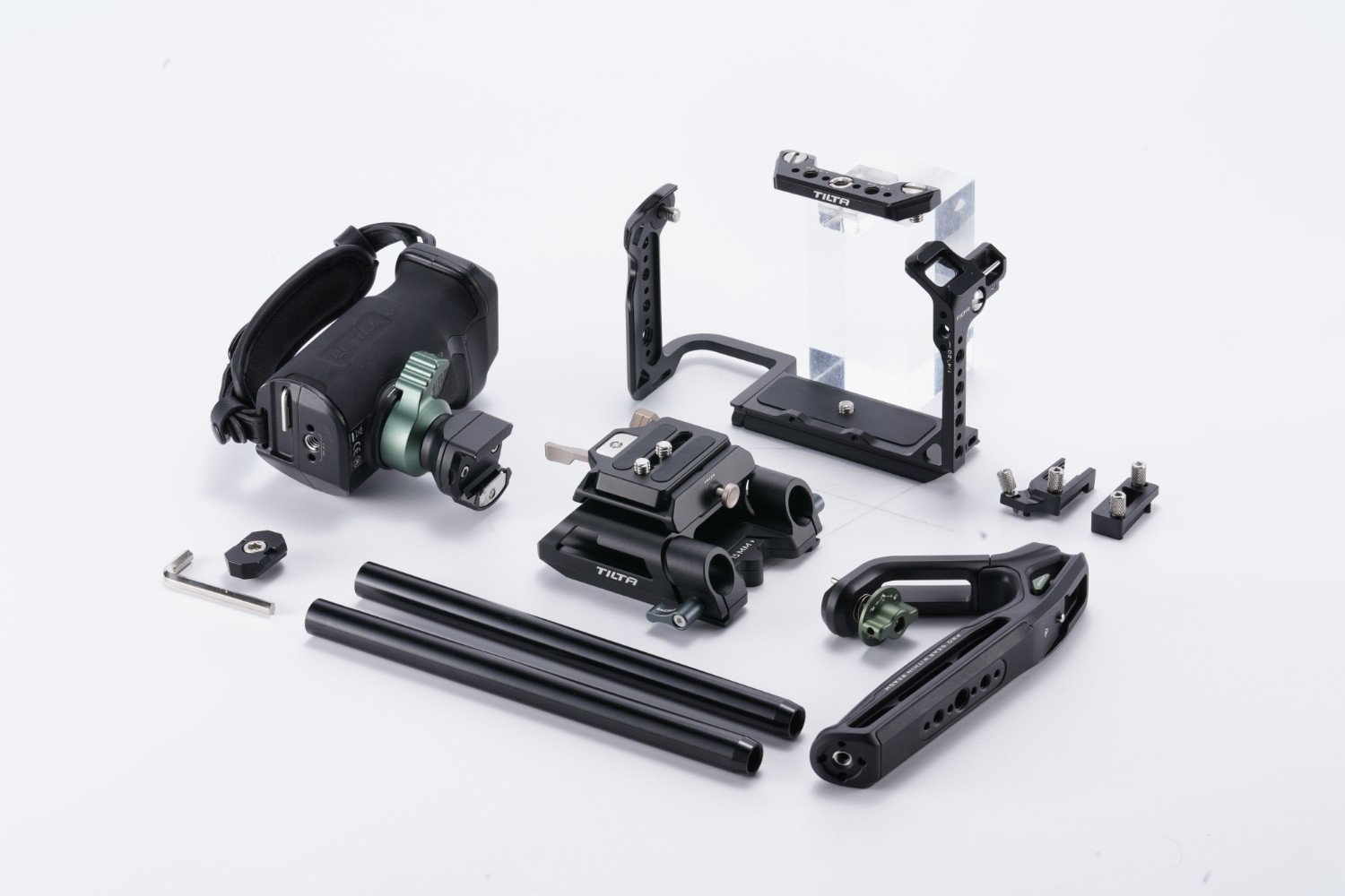 Die Grundlage dieses Kits ist der vollständige Kamerakäfig, der zusätzlichen Schutz für das Canon C50-Kameragehäuse bietet und es Benutzern ermöglicht, viele videobezogene Zubehörteile anzubringen. Drei Kontaktpunkte sorgen für eine sichere Verbindung und tragen zur Stabilität des Käfigs bei, wenn unter hohen Belastungen und in dynamischen Aufnahmeumgebungen gearbeitet wird. Dank seines modularen Designs lässt sich das Gerät leicht in einen Halbkäfig zerlegen, um kleinere und leichtere Aufbauten zu ermöglichen.