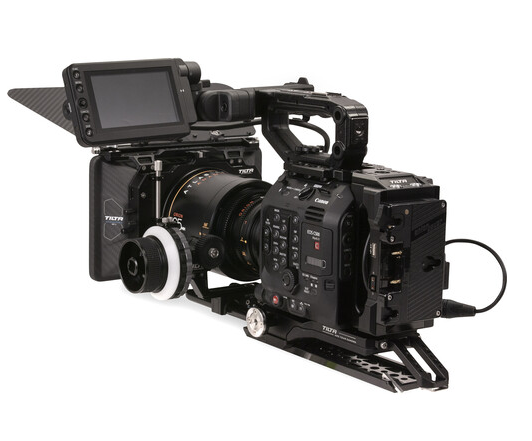 Das Tilta ES-T19-C-AB Kit C verwandelt die C300 Mark III oder C500 Mark II in wenigen Minuten in eine voll ausgestattete Schulterkamera. Der leichte und dennoch äußerst stabile Aluminiumkäfig bietet umfassenden Schutz und Befestigungspunkte, während die Gold-Mount-Platte (mit 3× D-Tap, 2/3-Pin-LEMO, USB) die Kamera und sämtliches Zubehör über einen einzigen Akku mit Strom versorgt. Die Schnellwechsel-Grundplatte bietet ARRI-Rosetten, vordere/hintere 15-mm-LWS-Stangen und VCT-14-Kompatibilität über die mitgelieferte Verlängerung und 10-Zoll-Schwalbenschwanz. Die MB-T12-Mattebox aus Kohlefaser lässt sich mit drei festen 4×5,65″-Ablagen und einem kompletten Hard-Matte-Set sofort befestigen (80–134-mm-Adapter im Lieferumfang enthalten), und der FF-T03-Follow-Focus sorgt für sanfte Präzision mit Hard-Stop. Perfekt für Dokumentar-, ENG- und Narrative-Crews, die ein schnelles, ausgewogenes Rig mit Kabelmanagement direkt aus dem Koffer benötigen.