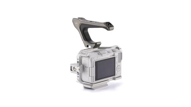 Der obere Griff erweitert außerdem die Befestigungsmöglichkeiten mit zusätzlichen 1/4"-20-Gewinden und einer Schiene, die sich ideal für einen externen Monitor eignet.