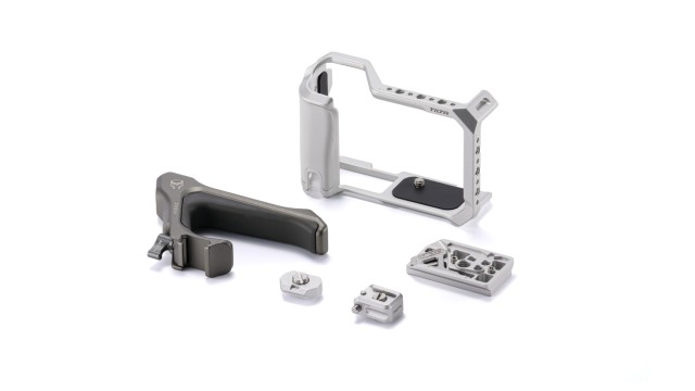 Das Design umfasst einen integrierten Griff mit Gummibeschichtung, der sich der Form Ihrer Handfläche anpasst, wodurch das Halten der Kamera in der Hand bequemer ist als mit einem herkömmlichen Käfig.