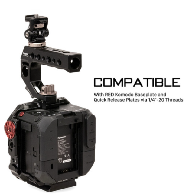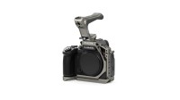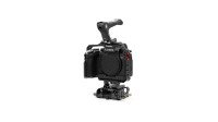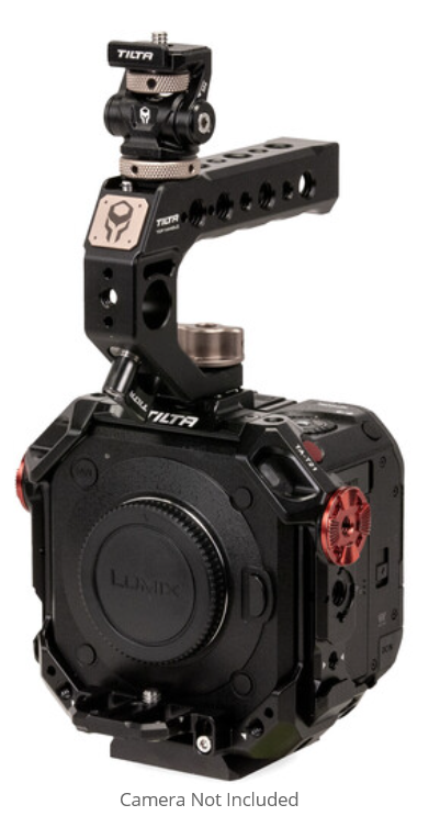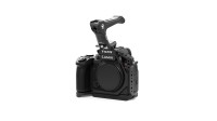 Das TA-T21-B-B Kit B von Tilta ist das ultimative professionelle Zubehörpaket für die Panasonic Lumix BGH1 (und BS1H). Der passgenaue Vollkäfig aus Aluminium umschließt hauptsächlich die Vorderseite der Kamera und sorgt für ein schlankes, unauffälliges Erscheinungsbild, während er gleichzeitig umfangreiche Befestigungsmöglichkeiten bietet: drei Blitzschuhe, zwei NATO-Schienen, zwei ARRI M6-Rosetten, mehrere 1/4"-20- und 3/8"-16-Gewinde sowie sieben Stativgewinde an der Unterseite für eine perfekte Ausbalancierung des Gimbals. Der mitgelieferte leichte Schnellwechsel-Obergriff bietet einen zusätzlichen Blitzschuh und einen 15-mm-Stangenanschluss, während die spannungsregulierbare Monitorhalterung eine schnelle und sichere Positionierung des Monitors ermöglicht. Zwei Schnellwechselplatten lassen sich direkt an der Unterseite des Käfigs befestigen und ermöglichen einen sofortigen Wechsel des Stativs oder Kopfes. Die spezielle EF-Mount-Adapterhalterung mit Schlitzverstellung sorgt für eine absolut stabile Objektivadapterbefestigung.