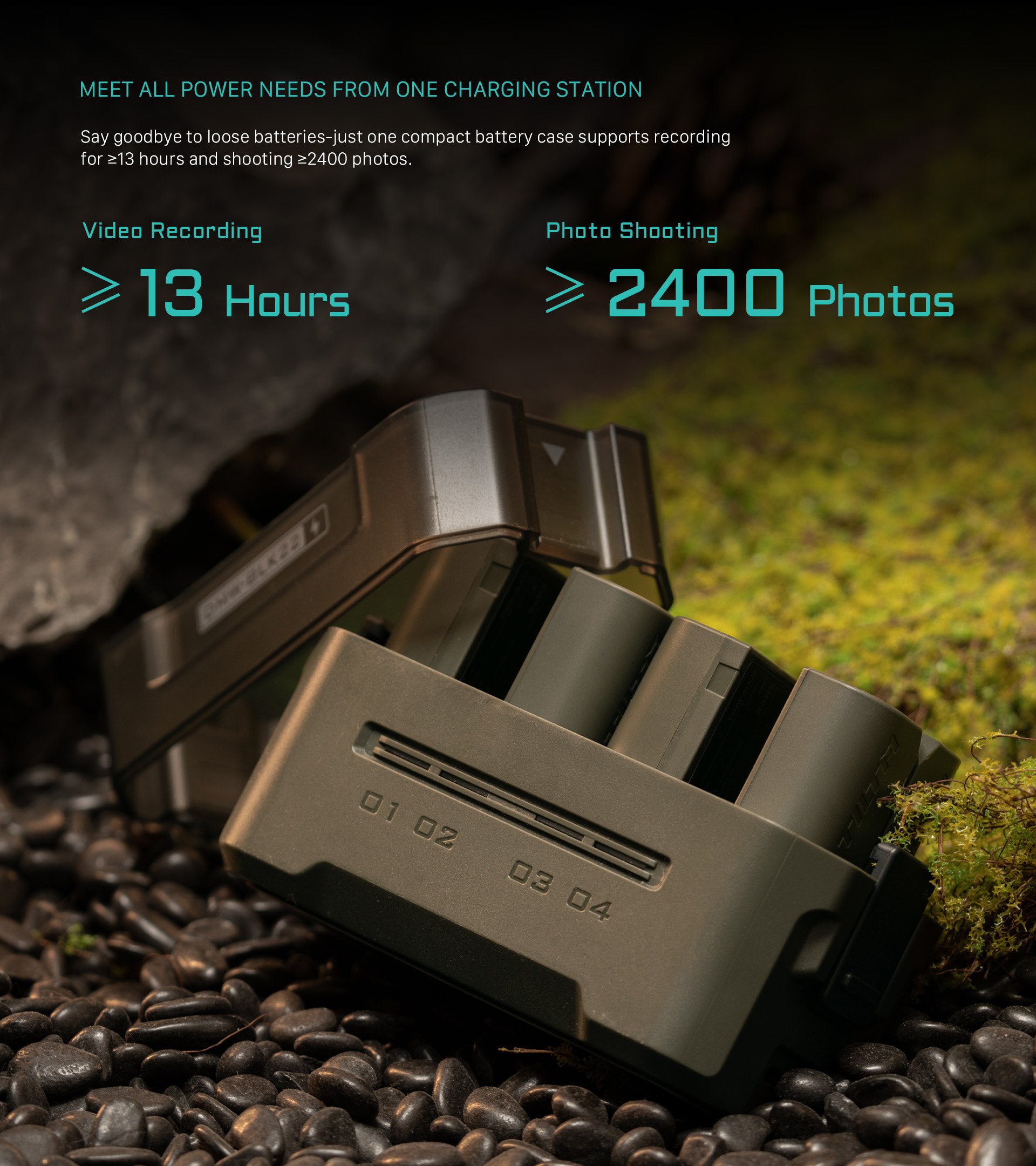 Ganz gleich, ob Sie professionelle Aufnahmen machen oder private Momente festhalten, dieses vielseitige Ladegerät bietet Ihnen die nötige Energie in einem praktischen, tragbaren Paket.