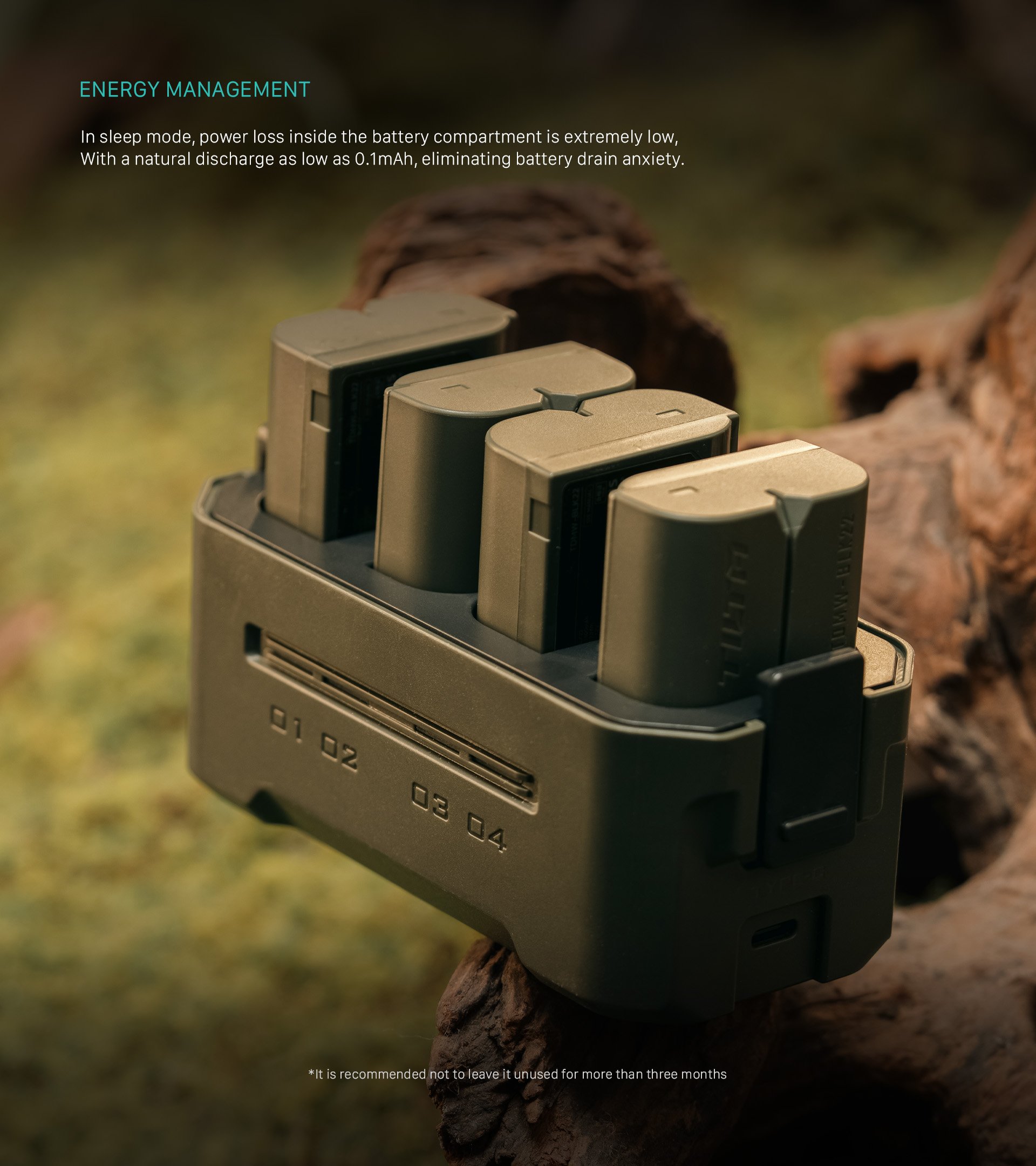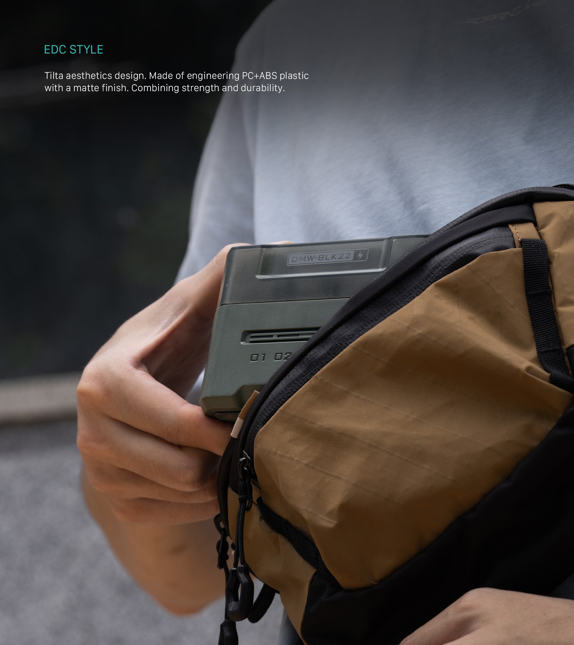Die tragbare Ladestation von Tilta zeichnet sich durch ein EDC-ähnliches Design mit der charakteristischen Ästhetik von Tilta aus und ist somit eine stilvolle und funktionale Ergänzung zu Ihrer Ausrüstung.