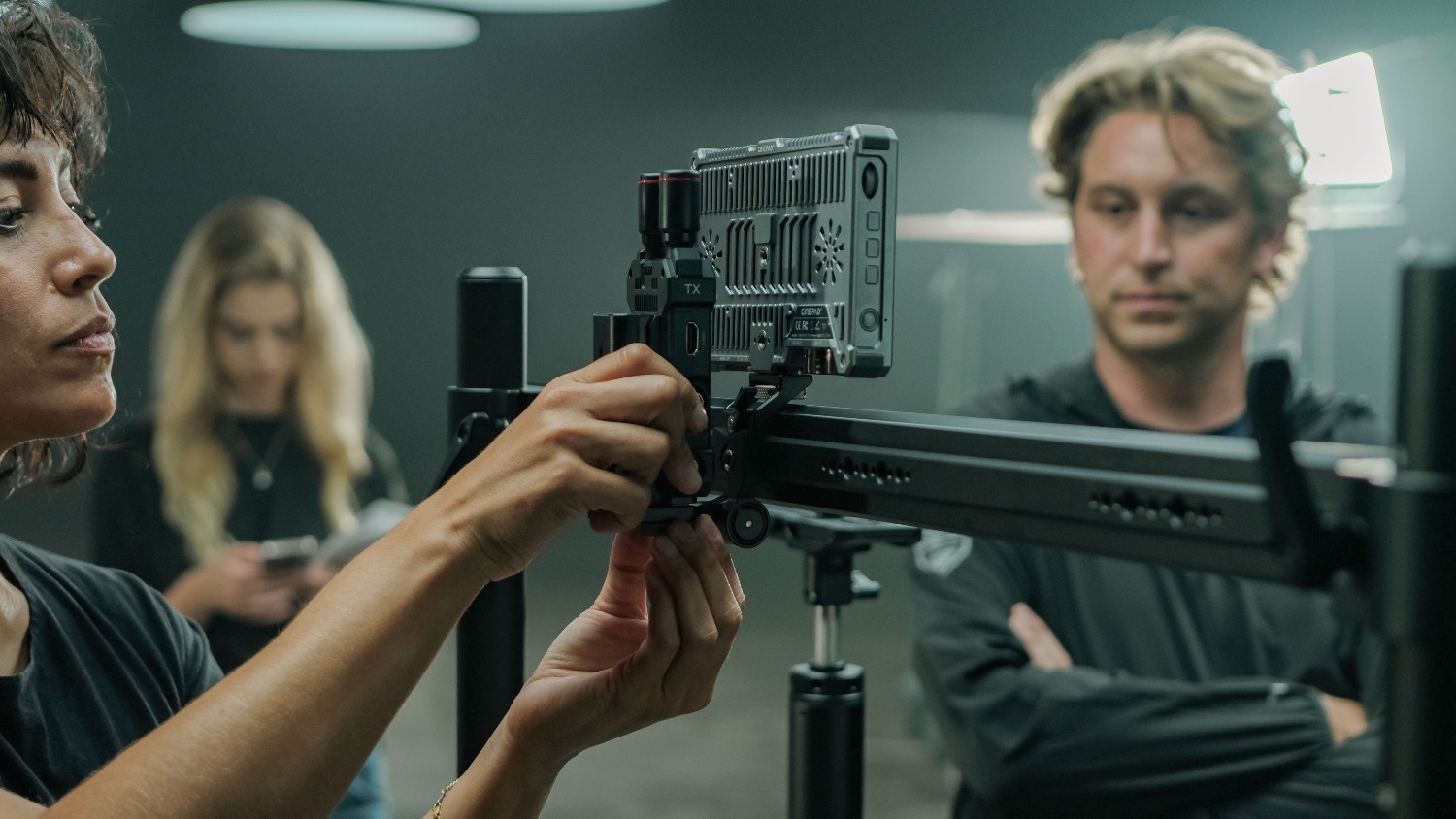 Ausgestattet mit zwei 1/4″-20-Befestigungspunkten und ARRI-Fixierstiften sorgt die Halterung dafür, dass Monitore, Videoempfänger oder ähnliches Zubehör fest an ihrem Platz bleiben und sich während der Bewegung nicht drehen können. Dank der gekoppelten Bewegungsfunktion können beide befestigten Geräte gemeinsam entlang der Schiene neu positioniert werden, wodurch eine perfekte Ausrichtung gewährleistet und die Flexibilität des Arbeitsablaufs verbessert wird.