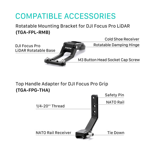 Das Tilta TGA-FP-EK Erweiterungsset für DJI Focus Pro verbessert die Flexibilität bei der Montage und Handhabung, indem es eine drehbare Halterung, einen Adapter für den oberen Griff und eine NATO-Schienenhalterung in einer umfassenden Lösung kombiniert. Dieses Set wurde speziell für das DJI Focus Pro-System entwickelt und ermöglicht es Benutzern, Griffe, Zubehör und oben montierte Konfigurationen mit professioneller Stabilität und Präzision zu integrieren.
