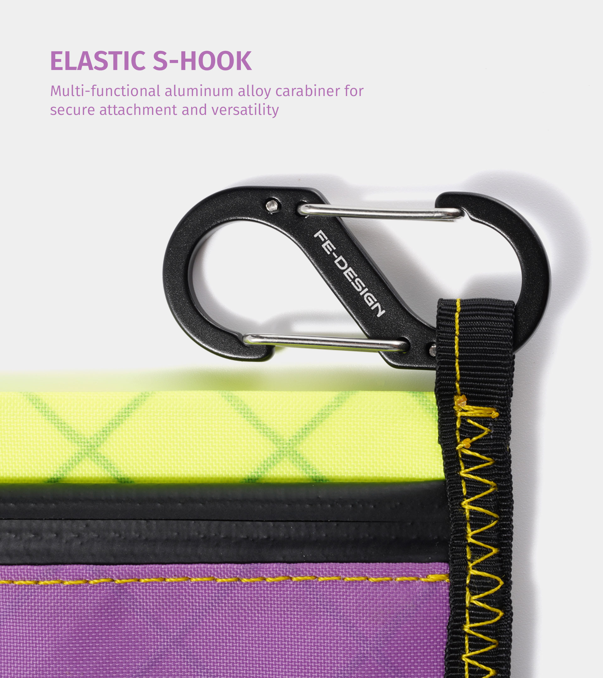 Jedes Detail des Fé-Kartenhalters wurde sorgfältig durchdacht. Der elastische S-Haken ist ein vielseitiger Karabiner aus Aluminiumlegierung, mit dem Sie den Kartenhalter sicher an Taschen, Gürteln oder Ausrüstung befestigen können.