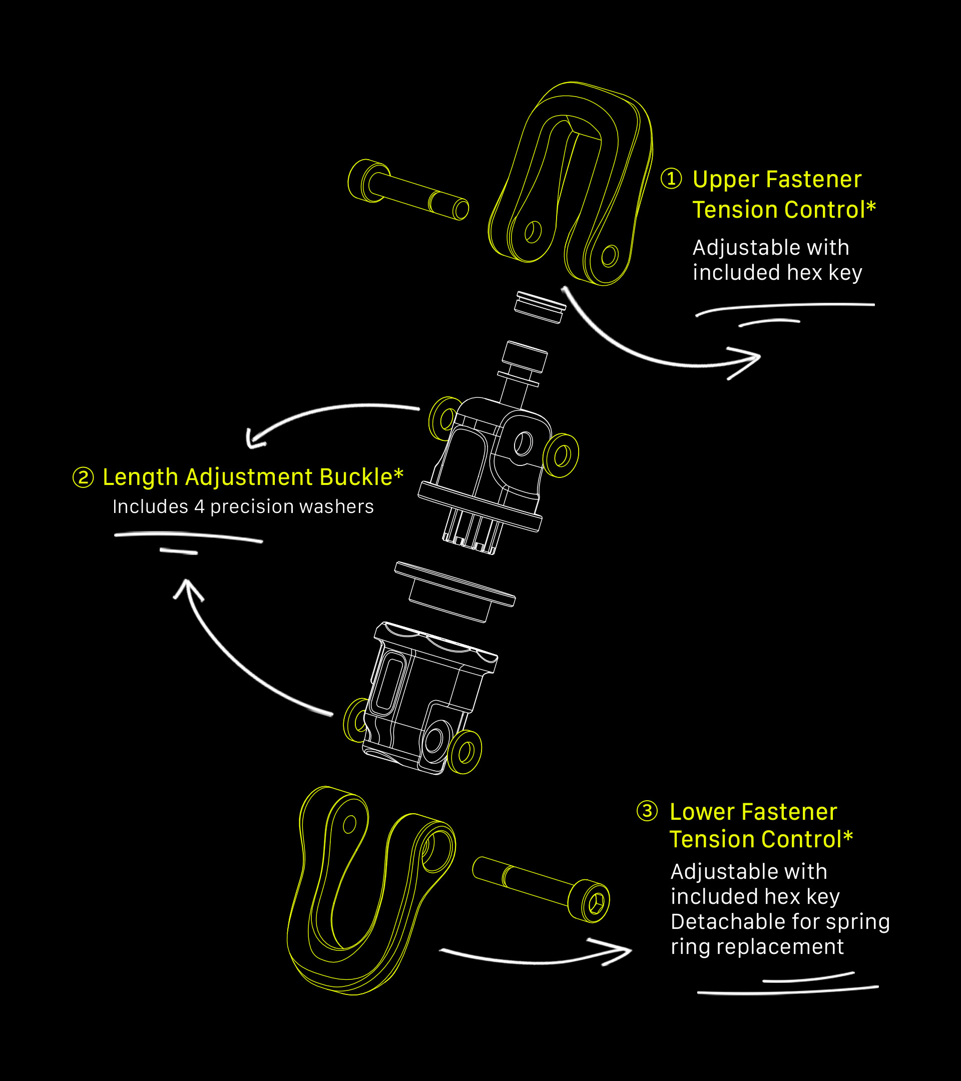 Eine intuitive Schnalle ermöglicht eine einfache und schnelle Längenverstellung für verschiedene Konfigurationen, und fortschrittliche magnetische Schnellverschlüsse nutzen die Fidlock HOOK-Schnellverschlusstechnologie für extreme Flexibilität.