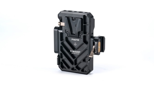 Diese V-Mount-Akkuplatte wird an der Basis des Pfostens des Tilta Float-Systems befestigt, um Ihr Gimbal-Setup mit Strom zu versorgen. Zwei V-Mount-Akkuplatten können an der Platte angebracht werden (eine auf jeder Seite) und sie wird über eine sehr einfache NATO-Schienenverbindung am Pfosten befestigt.