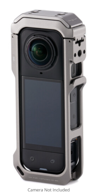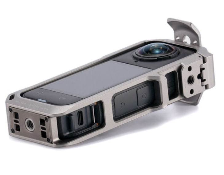 Der Tilta Full Camera Cage für Insta360 X5 bietet verbesserten Schutz und erweiterte Befestigungsmöglichkeiten mit verdrehsicheren Gewinden, einem Blitzschuh, einer Schnellwechselhalterung und einer drehbaren Objektiv-Sicherheitshalterung – alles in einem leichten titangrauen Aluminiumdesign.