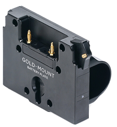 • Batteriehalterung: Standard-Gold Mount (keine integrierten Ausgänge an der Platte – verwenden Sie die Anschlüsse der Batterie)