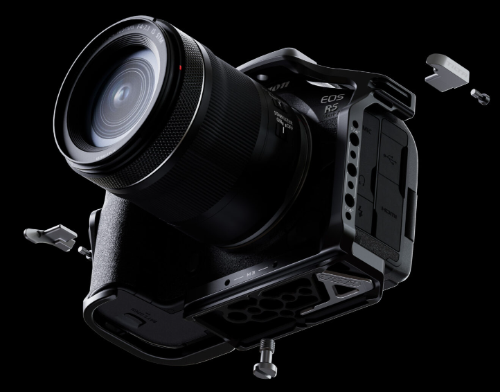 Sein Halbabdeckung-Design gewährleistet vollständigen Zugriff auf alle wichtigen Anschlüsse, Tasten und das Batteriefach und bietet gleichzeitig robusten Halt für Zubehör wie Monitore, Mikrofone, Objektivhalterungen, Seitengriffe und vieles mehr. Mehrere Gewindebefestigungspunkte – darunter 1/4"-20, 3/8"-16 und M3-Frontgewinde – ermöglichen es Benutzern, ihre Ausrüstung mit maximaler Vielseitigkeit aufzubauen.