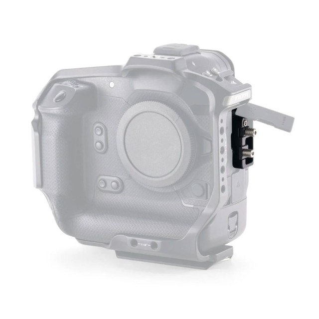 Diese Klemme lässt sich mithilfe eines speziellen Befestigungspunkts leicht in den Canon R1-Käfig integrieren. Sie wird mit einem Innensechskantschlüssel befestigt, um eine feste Verbindung mit dem Käfig zu gewährleisten, und verfügt über Schrauben mit Fingerspitzengefühl für ein schnelles Anschließen und Trennen der Kabel. Die Klemme erhöht die Sicherheit der Kabelverbindung und ermöglicht das gleichzeitige Anschließen mehrerer Kabel, einschließlich HDMI und USB-C, mit einem kompakten Zubehörteil.