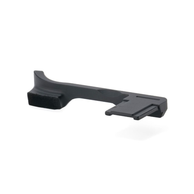 Dieser Griff wird am Blitzschuhanschluss der Kamera befestigt und bietet einen bequemen und stabilen Platz für den Daumen beim Fotografieren.