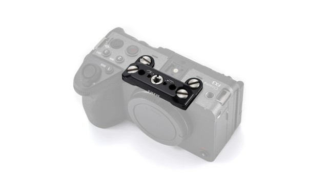 Diese Aufsatzplatte schafft Freiraum für den Blitzschuh der FX3/30 und ermöglicht so die Verwendung von Zubehör wie dem Sony ECM-W3 Mikrofon.