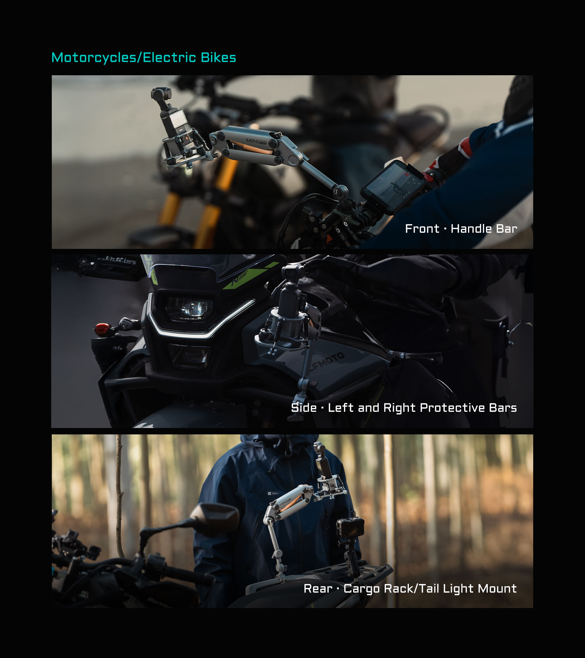 Dieser Miniaturarm ist kompatibel mit kleineren Kamerasystemen wie der DJI Action 3/4, DJI Pocket 3, Insta360 X4/X3 und allen anderen Systemen mit einem Gewicht von bis zu 1,32 lbs, einschließlich Smartphones mit unserem Khronos-Ökosystem.
