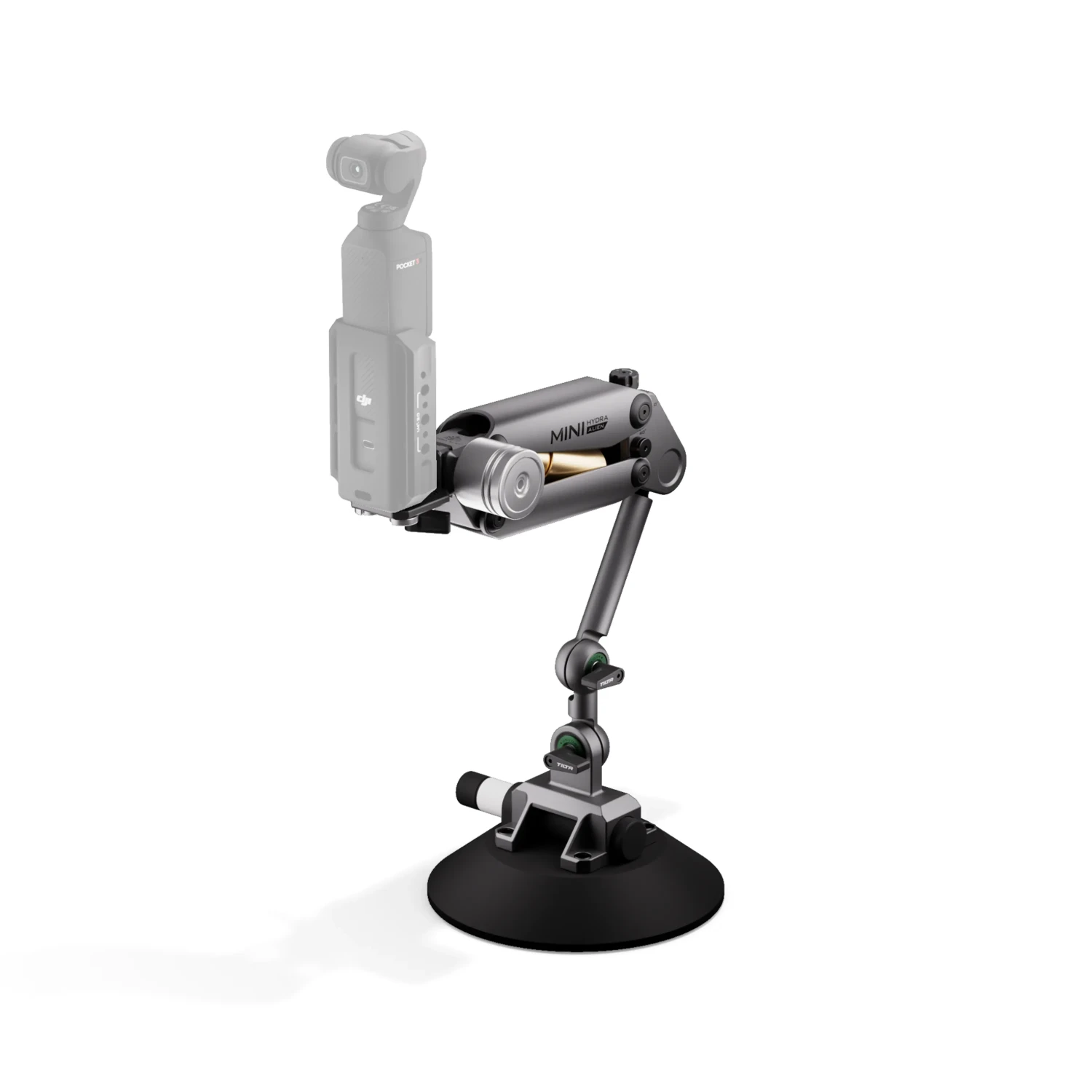 Das Tilta Hydra Alien Mini Electronic Suction Cup Kit in Titanium Gray verleiht leichten Kamerasystemen mit unvergleichlicher Leichtigkeit und Präzision professionelle Stabilität. Inspiriert durch das Design des Hydra Arms, integriert dieses kompakte Kit einen stoßabsorbierenden Arm, der mit Kameras mit einem Gewicht von bis zu 1,32 lbs kompatibel ist, einschließlich der DJI Action 3/4, DJI Pocket 3, Insta360 X4/X3 und sogar Smartphones innerhalb des Khronos Ecosystems. Das Kernstück des Kits, der batteriebetriebene elektronische Saugnapf, bietet eine Drucküberwachung in Echtzeit und erhöht automatisch die Saugkraft, um ein Auslaufen zu verhindern und eine sichere Befestigung bei bewegungsintensiven Szenen zu gewährleisten.