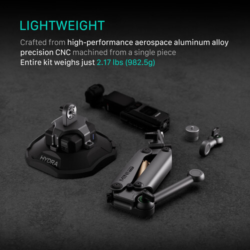 Das Tilta Hydra Alien Mini Master Kit (Desert Beige) ist ein fortschrittliches Stabilisierungssystem, das für die Befestigung von Action-Kameras und kompakten Aufnahmegeräten an verschiedenen Fahrzeugen, einschließlich Autos, Motorrädern und Fahrrädern, entwickelt wurde. Inspiriert von Tiltas Hydra-Arm-System, bietet diese Miniaturversion hochwertige Stoßdämpfung und überlegene Stabilität in einer leichten, kompakten Form.