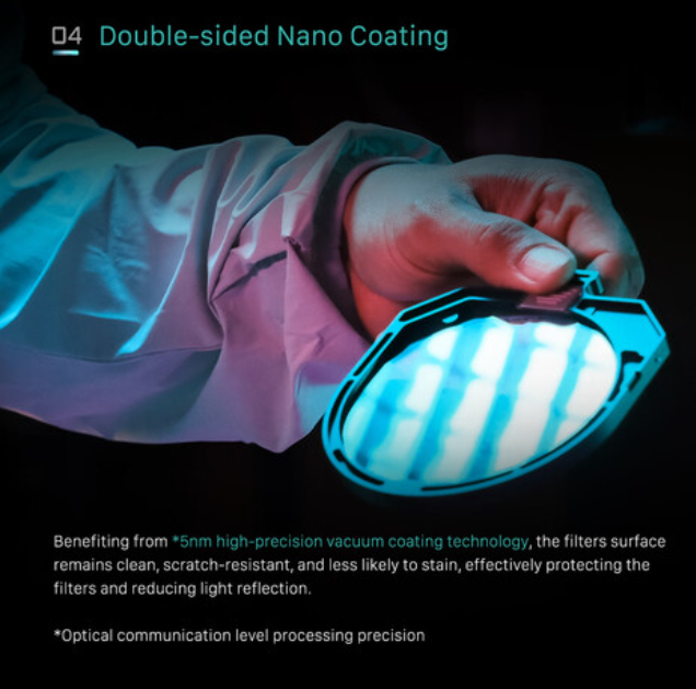 Der Tilta TF-95-BS 95 mm Illusion Blue Streak Filter verwandelt gewöhnliche Punktlichter in auffällige, langgestreckte blaue Streifen, die an klassisches anamorphotisches Glas erinnern. Der Filter lässt sich innerhalb der 95-mm-Klemmhalterung des Mirage um 360° drehen, sodass Sie die Streifenrichtung kreativ gestalten können, ohne die Mattebox neu positionieren zu müssen. Er ist aus hochwertigem, wasserklarem optischem Glas mit beidseitiger Mehrschicht-Nanobeschichtung gefertigt und bietet außergewöhnliche Schärfe und Farbtreue bei gleichzeitig drastisch reduzierten Reflexionen, Fingerabdrücken und Kratzern. Ein unverzichtbares Werkzeug für Kameraleute, die die anamorphotische „blaue Linie”-Ästhetik auf budgetfreundlichen sphärischen Objektiven oder bei Open-Gate-/Variscope-Aufnahmen erzielen möchten.