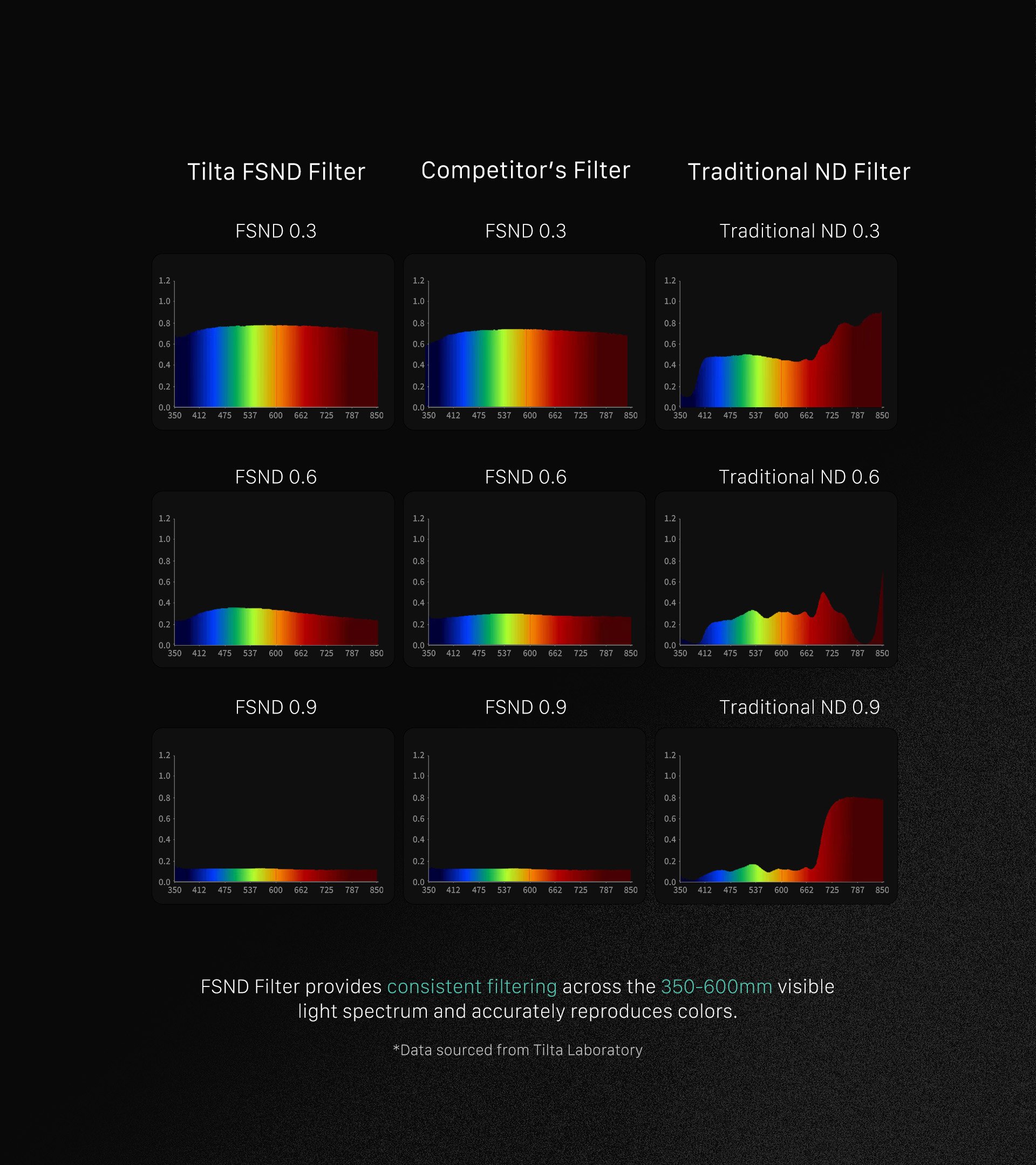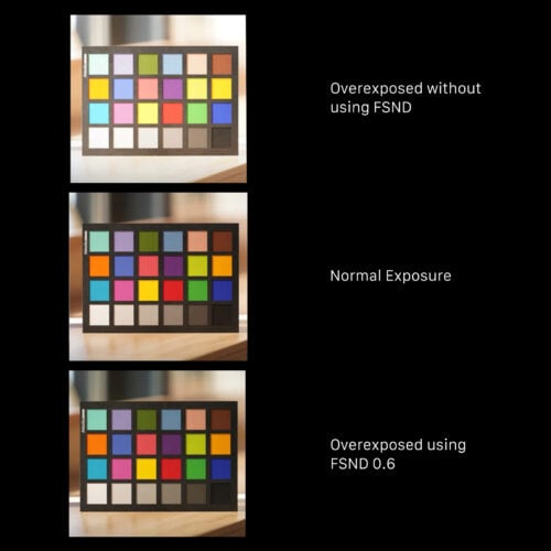 Die mitgelieferten ND-Filter ermöglichen eine bessere Kontrolle über die Belichtung, indem sie das für den Sensor sichtbare Licht reduzieren, was auch dazu beiträgt, die Verschlusszeit bei Aufnahmen in helleren Lichtverhältnissen wie Tageslicht konstant zu halten.
