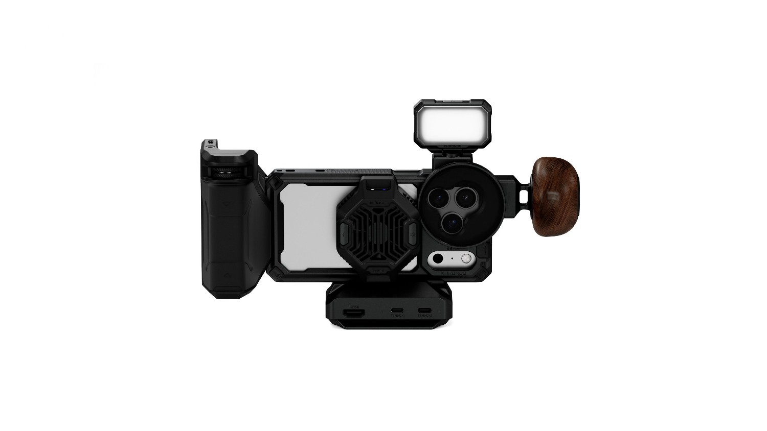Das Khronos Ultimate Kit für das iPhone 17 Pro Max repräsentiert die nächste Generation mobiler Filmausrüstung und bietet eine unvergleichliche Kombination aus Funktionalität und Eleganz. Das Khronos-Gehäuse verfügt über ein Schnellverschluss-Design für eine einfache Installation und integrierte elektronische Kontaktpunkte zur Stromversorgung des Zubehörs. Das Kit verbessert die Steuerung und Leistung durch die enthaltenen Module: