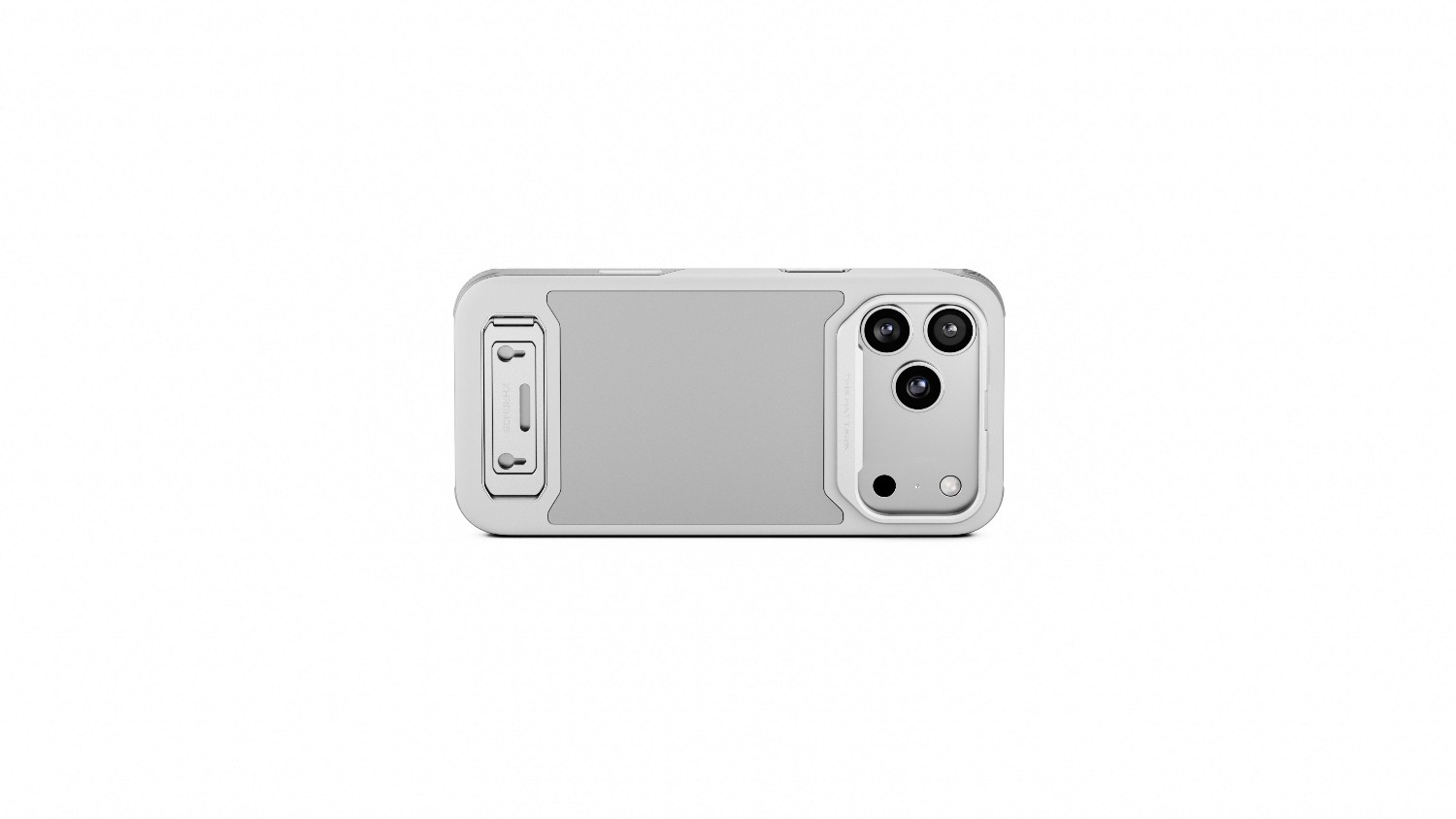 Kurzbeschreibung: Das Tilta Khronos Lite Case in Hellgrau ist eine leichte Schutzhülle für das iPhone 17 Pro/Pro Max, die sowohl für den täglichen als auch für den professionellen Gebrauch entwickelt wurde. Es verfügt über einen integrierten vertikalen/horizontalen Ständer, eine magnetische Rückplatte für Zubehör (SSDs, Leuchten, Powerbanks), einen schützenden Metallring für die Linse, verstärkte Ecken und eine kapazitive Touch-Durchleitung für den Kamerasteuerungsknopf.