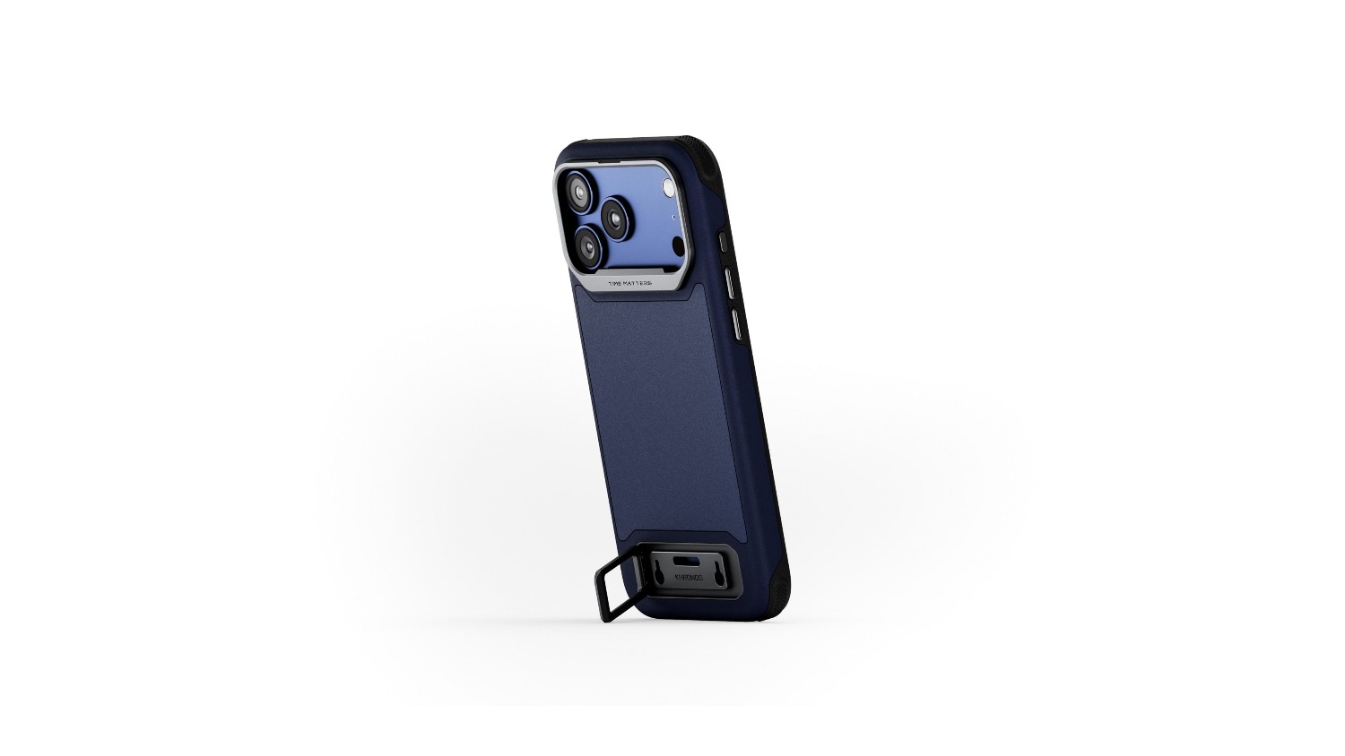 Die Tilta Khronos Lite iPhone 17 Pro Max Hülle (Marineblau) bietet professionelle Funktionalität in einem leichten, schützenden Design. Sie verfügt über einen vielseitigen integrierten Ständer für vertikale und horizontale Betrachtung, eine magnetische Rückplatte für die schnelle Befestigung von Zubehör (SSDs, Leuchten, Powerbanks) und eine kapazitive Touch-Durchleitung für den Kamerasteuerungsknopf.