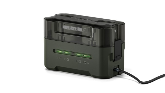 Mit der Möglichkeit, vier LP-E6-Akkus vollständig aufzuladen, ist der Benutzer bereit für bis zu 13 Stunden Videoaufnahmen oder genug Energie für 2.400 Fotos - perfekt für lange Aufnahmesessions.