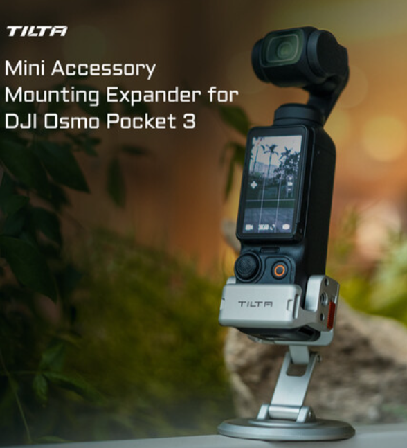 Der magnetische Befestigungsständer verfügt über zwei Gelenkpunkte, sodass Sie den Pocket 3 für Filmaufnahmen, Live-Streaming, Vlogging oder den Einsatz auf einem Tisch in nahezu jedem Winkel positionieren können. Der Montage-Expander verfügt über ein 1/4"-20-Gewinde, eine 3-polige Halterung im Action-Kamera-Stil, einen Kaltblitzschuh-Empfänger und einen DJI-Magnetanschluss und bietet so eine robuste Plattform für die Befestigung von Leuchten, Mikrofonen, Griffen und anderem Zubehör. Trotz seiner erweiterten Funktionen bietet das Design weiterhin vollen Zugriff auf alle Funktionen des Osmo Pocket 3 und den SD-Kartensteckplatz. Ein integriertes Silikonpad verbessert die Griffigkeit und schützt das Kameragehäuse vor Kratzern, während die leichte Aluminiumlegierung für Langlebigkeit ohne unnötiges Gewicht sorgt.