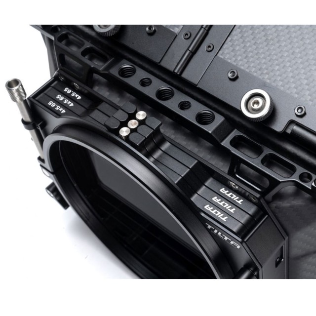 Diese 4×5,65 Kohlefaser-Mattebox ist so konstruiert, dass sie direkt auf Standard-Kinoobjektive geklemmt werden kann, um so leicht und unauffällig wie möglich zu sein. Sie enthält einen einzelnen Objektivadapterring, der auf den Frontdurchmesser Ihrer Wahl passt.