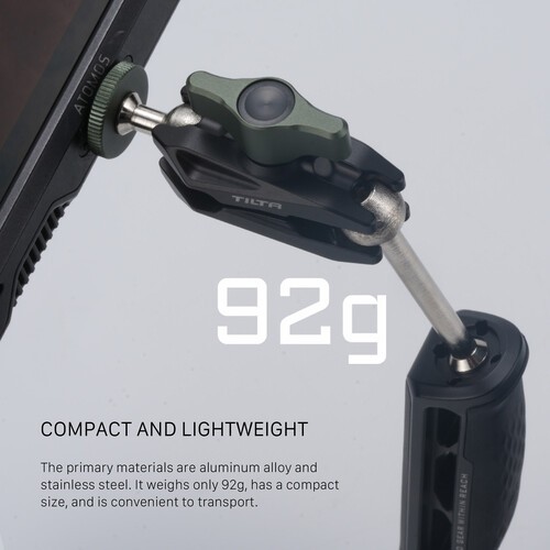 Der Tilta Micro Articulating Arm ist ein ideales Zubehör für Filmemacher, die kleine Accessoires mit flexibler Positionierung an ihrer Kameraausrüstung befestigen möchten. Dieser 5,2-Zoll-Gelenkarm besteht aus einer hochwertigen Aluminiumlegierung und Edelstahl und bietet eine starke und zuverlässige Halterung für Ihre Ausrüstung mit einer maximalen Tragkraft von 2,3 kg. Der Arm verfügt an jedem Ende über eine 1/4"-20-Außengewindeschraube und ist somit mit einer Vielzahl von Zubehörteilen wie On-Camera-Monitoren, Suchern und kleinen Fülllichtern kompatibel. Das Design umfasst zwei Gelenkpunkte für eine einfache und präzise Positionierung in individuellen Winkeln. Eine Seite des Arms ist etwas länger, um zu verhindern, dass er andere bereits an Ihrem Rig befestigte Zubehörteile behindert. Dank seines geringen Gewichts von nur 92 g und seiner kompakten Größe lässt er sich problemlos in jeder Kameratasche verstauen.