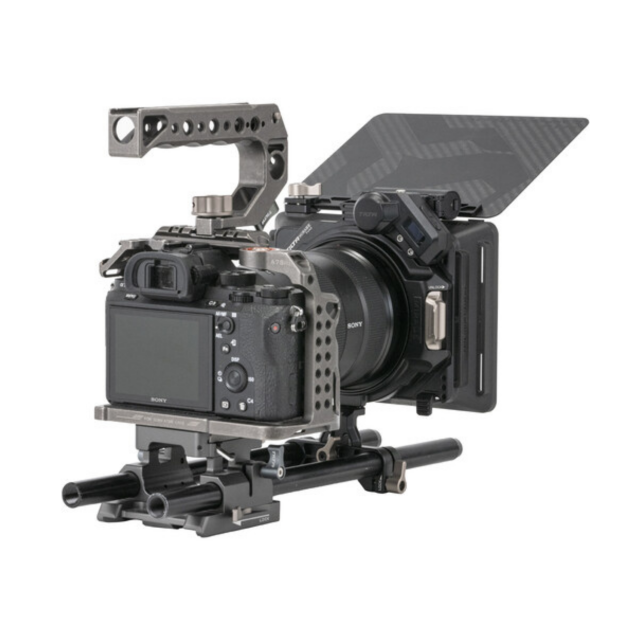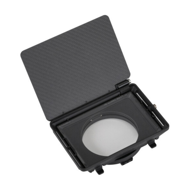 Das modulare Design ermöglicht es Ihnen, Ihre Matte Box auf vielfältige Weise zu konfigurieren: von der vollständigen Zerlegung mit dem 95-mm-Filterhalter und der Objektivklemme bis hin zum Hinzufügen eines stapelbaren 4 x 5,65-Zoll-Tabletts, der mitgelieferten Gegenlichtblende, der mitgelieferten Top-Flagge oder dem Austausch der Gegenlichtblende gegen eine optionale Gummiblende. Außerdem können Sie die optionale 15-mm-LWS-Stangenhalterung hinzufügen, mit der Sie die Matte Box an Stangen befestigen können, um schwerere Filter zu transportieren, z. B. das optionale VND-System (variable neutrale Dichte).