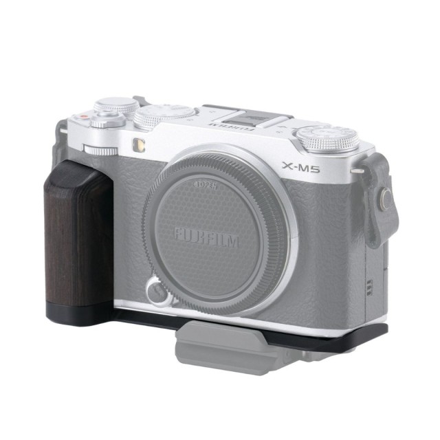 Dieses L-förmige Zubehörteil verfügt über einen Griff aus Walnussholz, der die Handhabung und das Halten der Fujifilm X-M5 erleichtert.