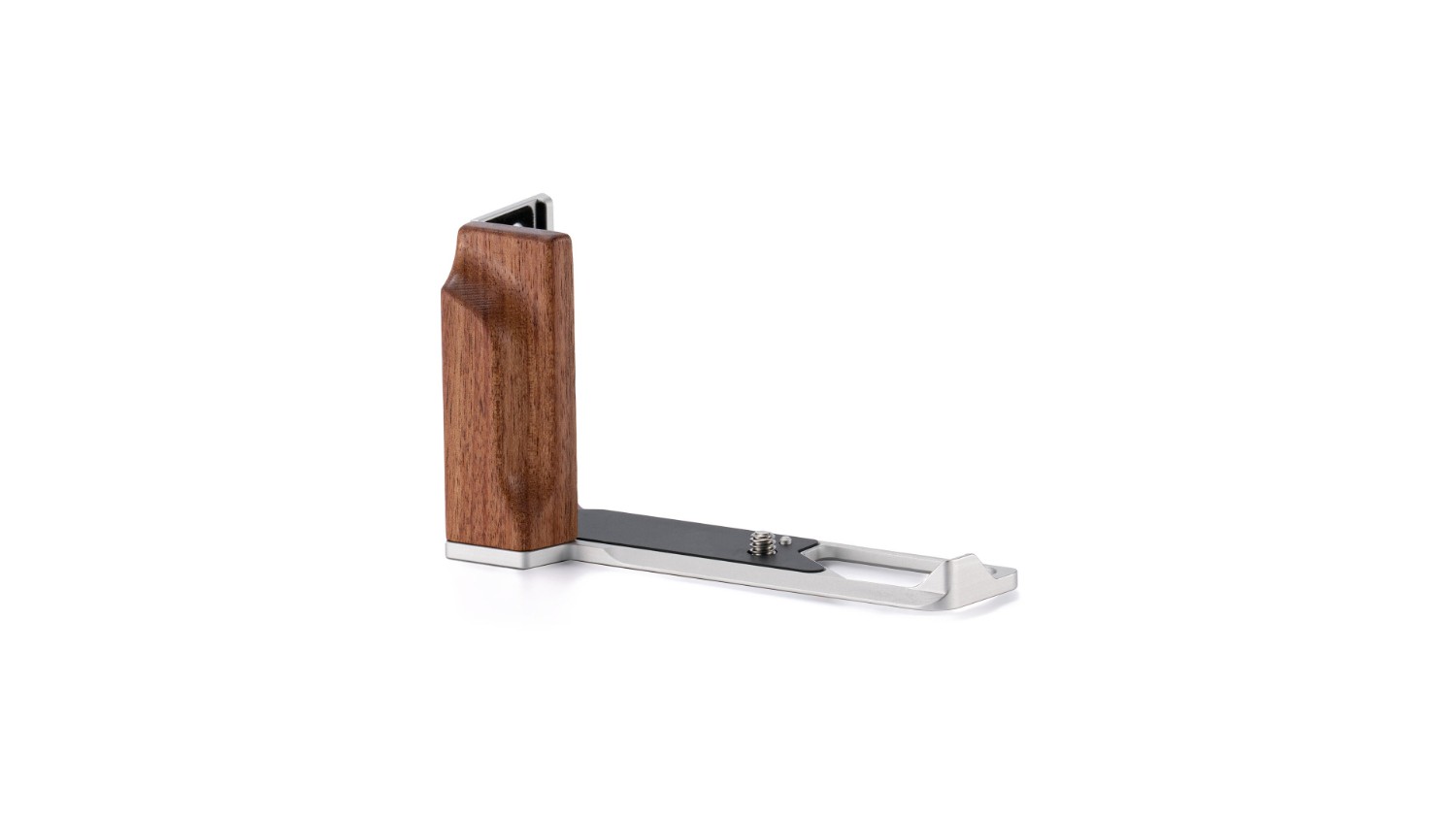 Wir stellen vor: die Montageplatte mit Holzgriff für die Sigma BF. Die Basis dieses L-förmigen Zubehörteils bildet ein Handgriff aus Walnussholz. Dieser sorgt für eine komfortablere Bedienung und Handhabung der Kamera, während sie gleichzeitig kompakt und reisefreundlich bleibt.