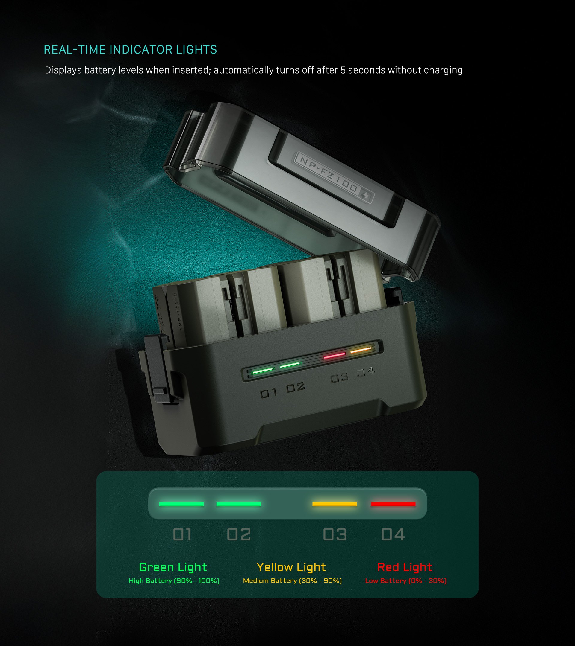 Echtzeit-Ladestatusanzeigen informieren Sie über den Status der einzelnen Akkus, und dank des leichten Designs wiegt das Gerät nur 176 Gramm, so dass Sie es problemlos mitnehmen können.